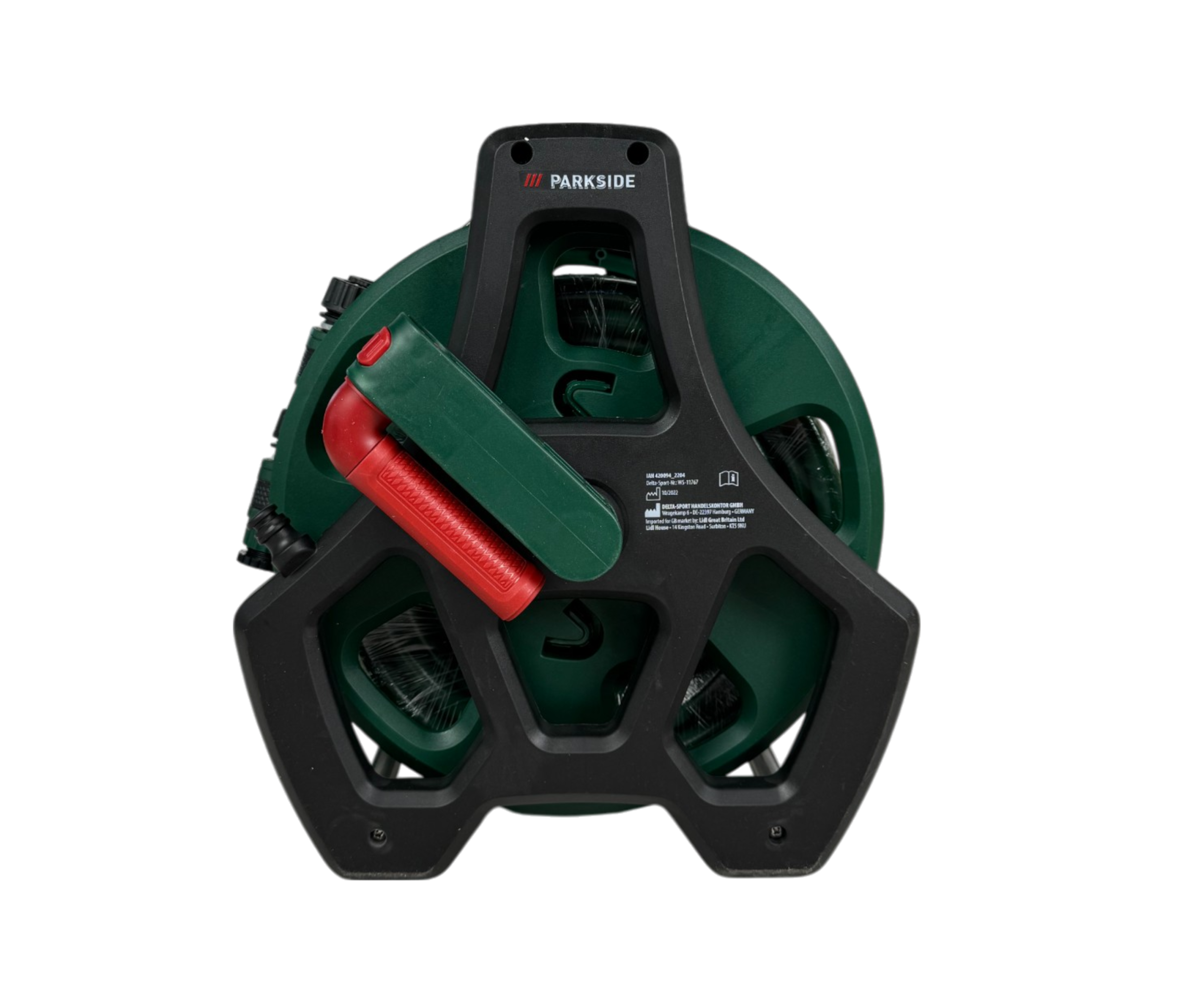 بكرة مدمجة مع مقبض دوران تسهّل لف الخرطوم وتخزينه بشكل مرتب دون تشابك